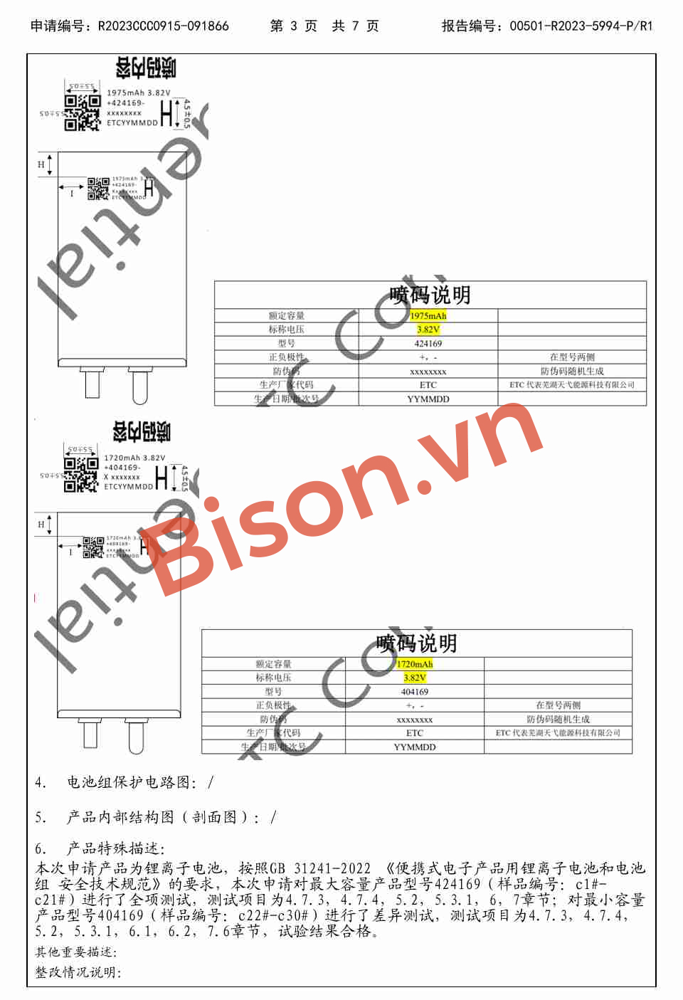 • Giấy tờ kiểm định CCC thương hiệu “Bison” đạt tiêu chuẩn Trung Quốc xem thêm bản full PDF toàn bộ tại đây