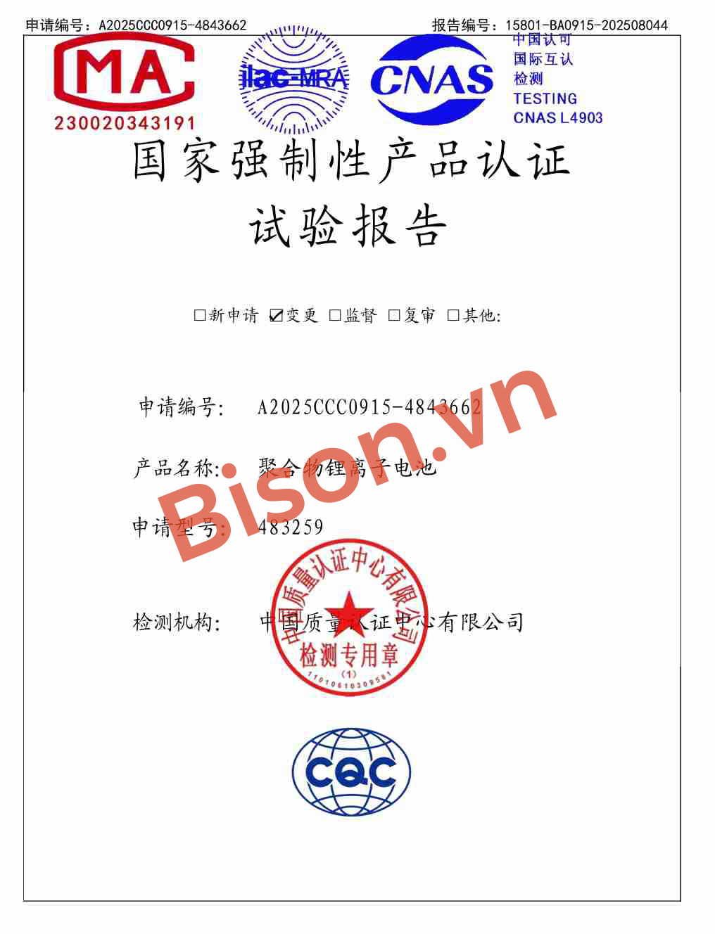 • Giấy tờ kiểm định CCC thương hiệu “Bison” đạt tiêu chuẩn Trung Quốc xem thêm bản full PDF toàn bộ tại đây