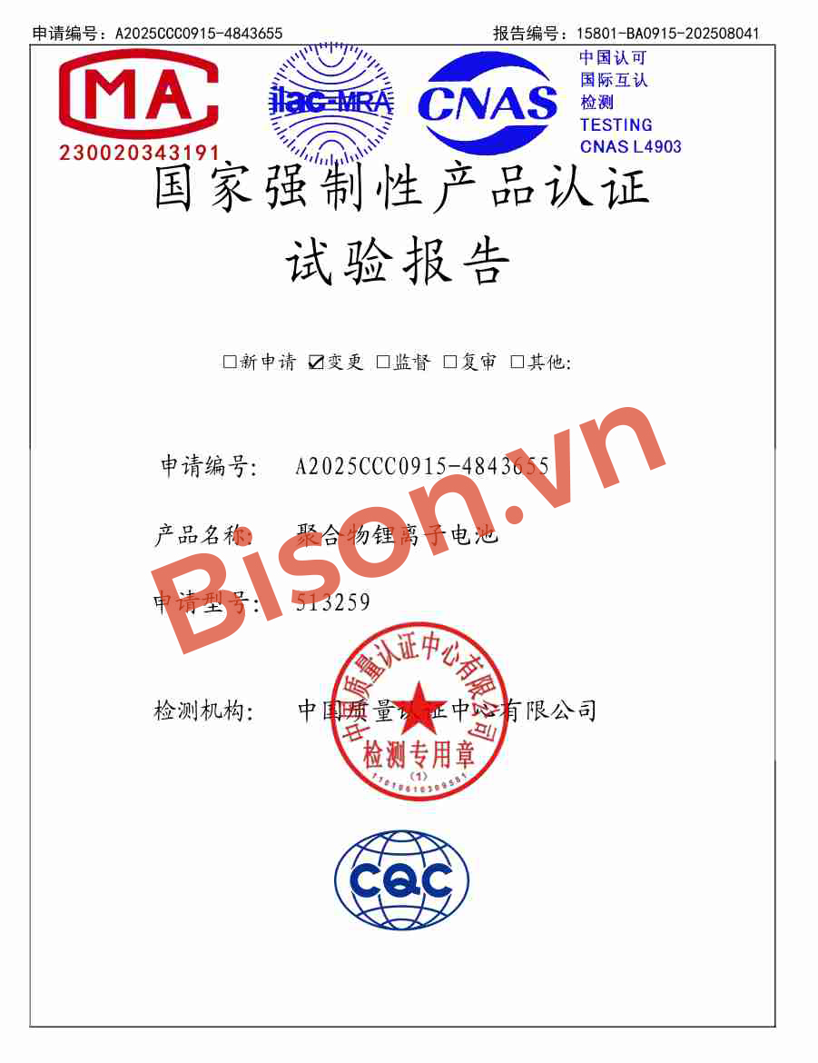 • Giấy tờ kiểm định CCC thương hiệu “Bison” đạt tiêu chuẩn Trung Quốc xem thêm bản full PDF toàn bộ tại đây