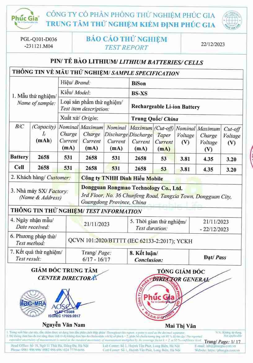 Xem thêm giấy tờ kiểm định full của Pin Bison iPhone X, Xr, XS, XS Max tại đây