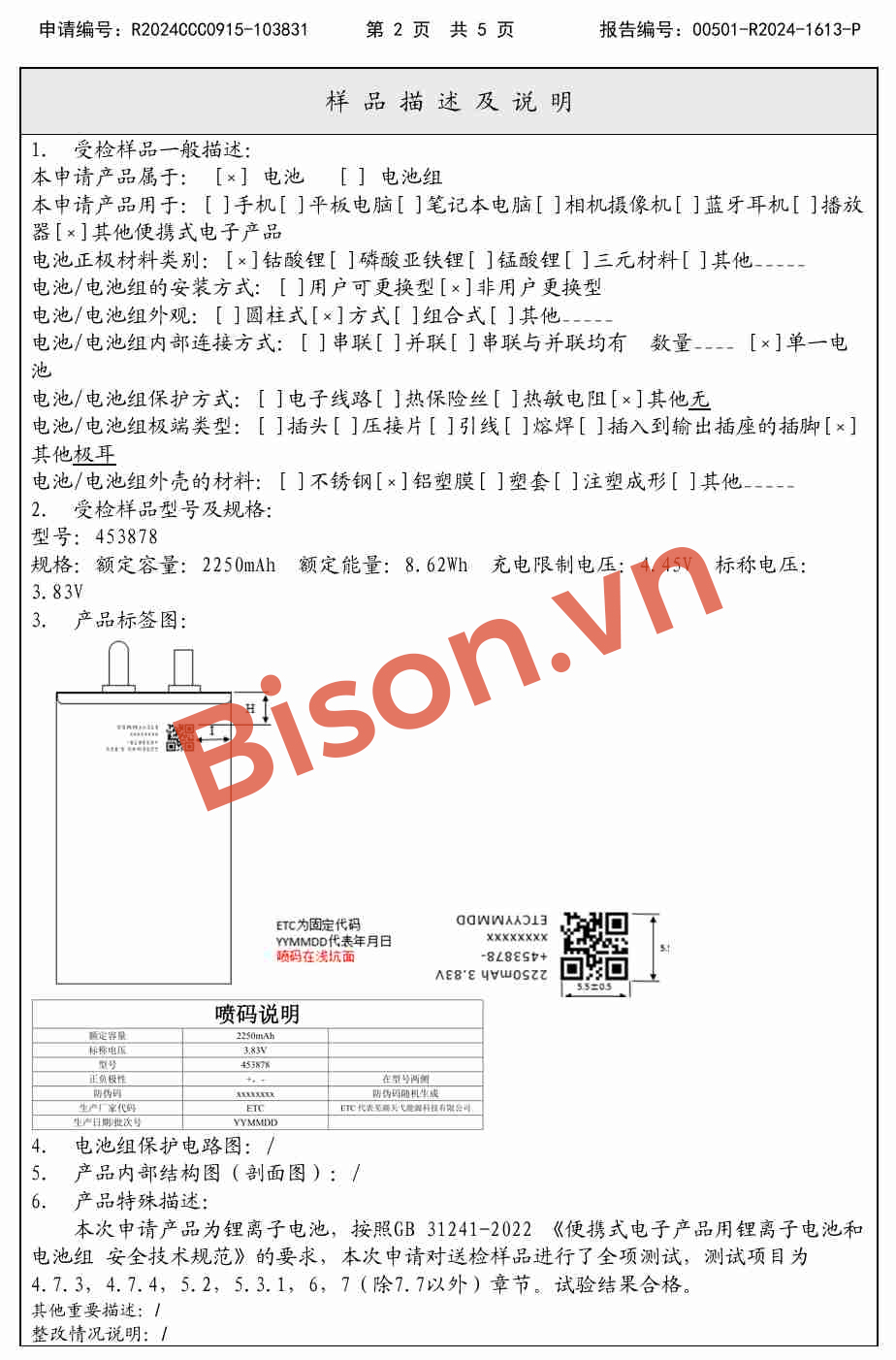 • Giấy tờ kiểm định CCC thương hiệu “Bison” đạt tiêu chuẩn Trung Quốc xem thêm bản full PDF toàn bộ tại đây