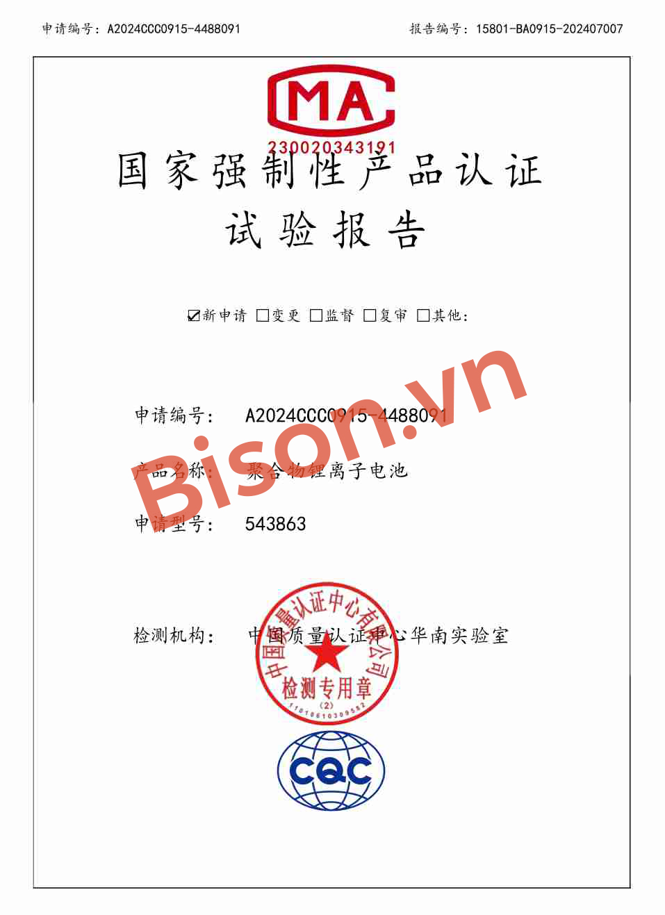 • Giấy tờ kiểm định CCC thương hiệu “Bison” đạt tiêu chuẩn Trung Quốc xem thêm bản full PDF toàn bộ tại đây