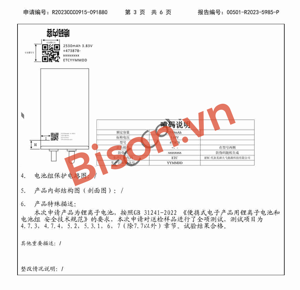 • Giấy tờ kiểm định CCC thương hiệu “Bison” đạt tiêu chuẩn Trung Quốc xem thêm bản full PDF toàn bộ tại đây