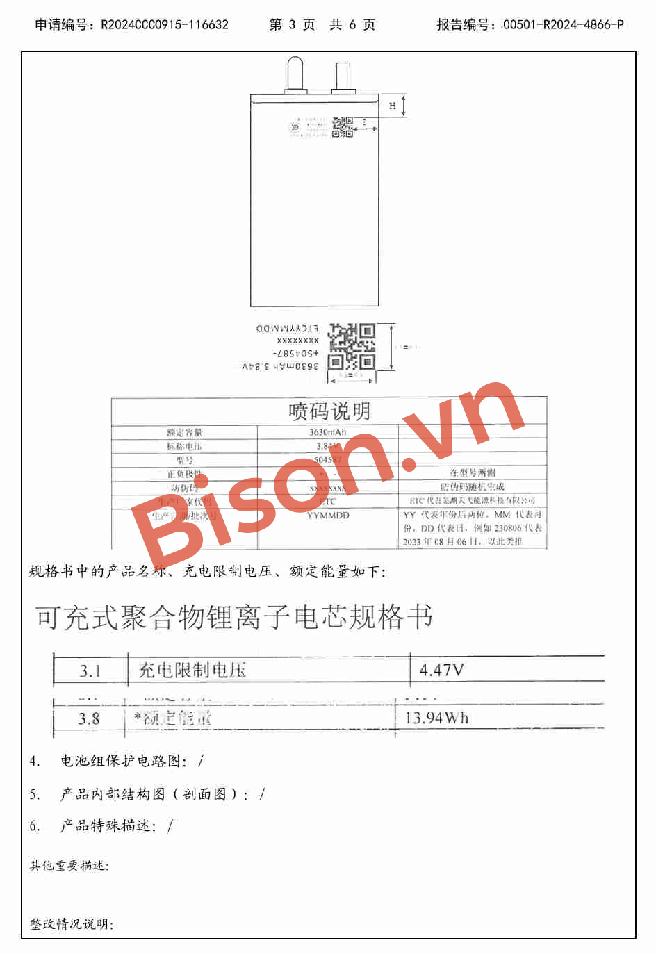 • Giấy tờ kiểm định CCC thương hiệu “Bison” đạt tiêu chuẩn Trung Quốc xem thêm bản full PDF toàn bộ tại đây