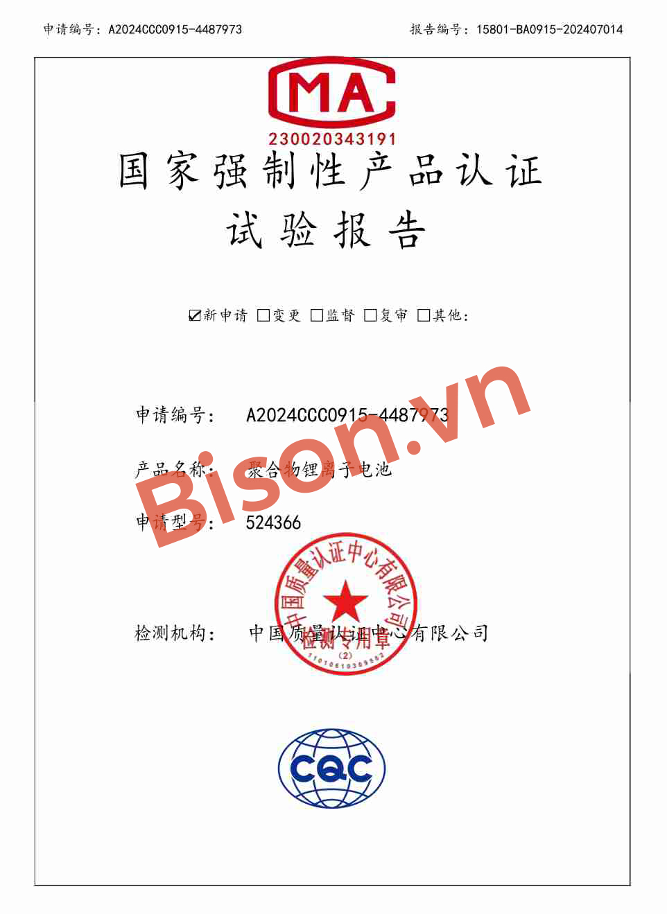 • Giấy tờ kiểm định CCC thương hiệu “Bison” đạt tiêu chuẩn Trung Quốc xem thêm bản full PDF toàn bộ tại đây