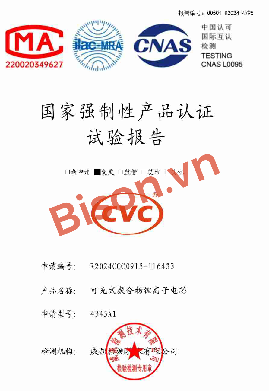 • Giấy tờ kiểm định CCC thương hiệu “Bison” đạt tiêu chuẩn Trung Quốc xem thêm bản full PDF toàn bộ tại đây
